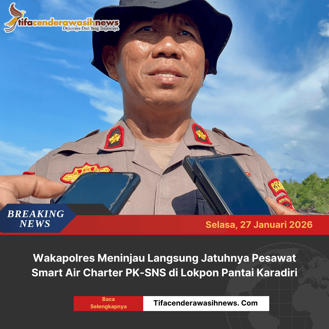 TCNews||Nabire, PapuaTengah|Wakil Kepala Kepolisian Resor (Wakapolres) Nabire, Kompol Dr. Piter Kendek, S.Sos., M.M., meninjau langsung lokasi jatuhnya pesawat Smart Air Charter PK-SNS di kawasan Lokpon Pantai Karadiri, Nabire Barat, Selasa (27/1/2026).