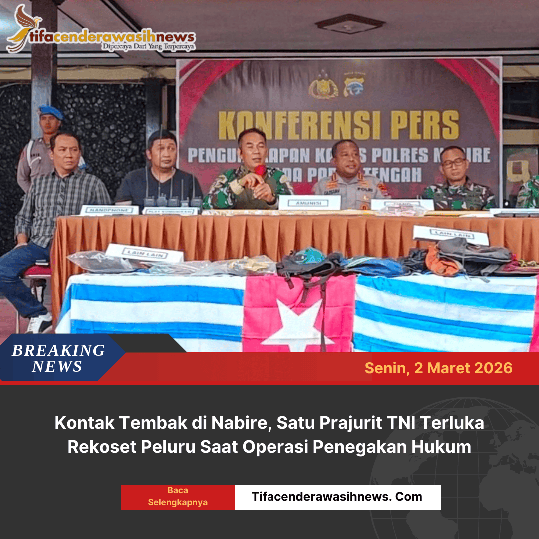 Nabire, Papua Tengah | Seorang anggota TNI dilaporkan mengalami luka akibat rekoset peluru saat terjadi kontak tembak antara aparat gabungan dan kelompok kriminal bersenjata (KKB) di wilayah Kabupaten Nabire, Papua Tengah, Minggu (1/2/2026).
