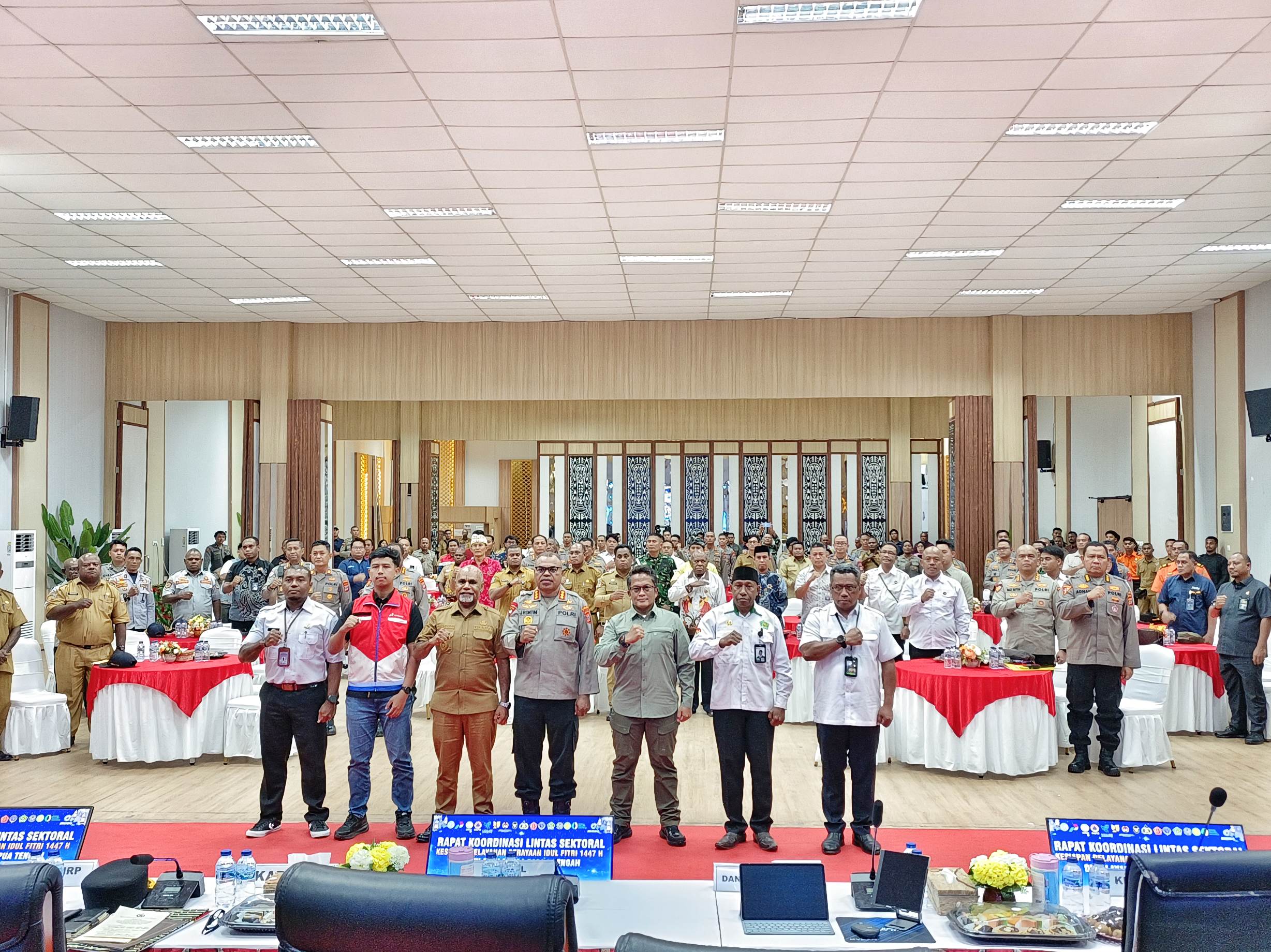Kegiatan tersebut bertujuan memperkuat koordinasi antarinstansi dalam menjaga keamanan, ketertiban, serta kelancaran aktivitas masyarakat menjelang perayaan Hari Raya Idulfitri.
