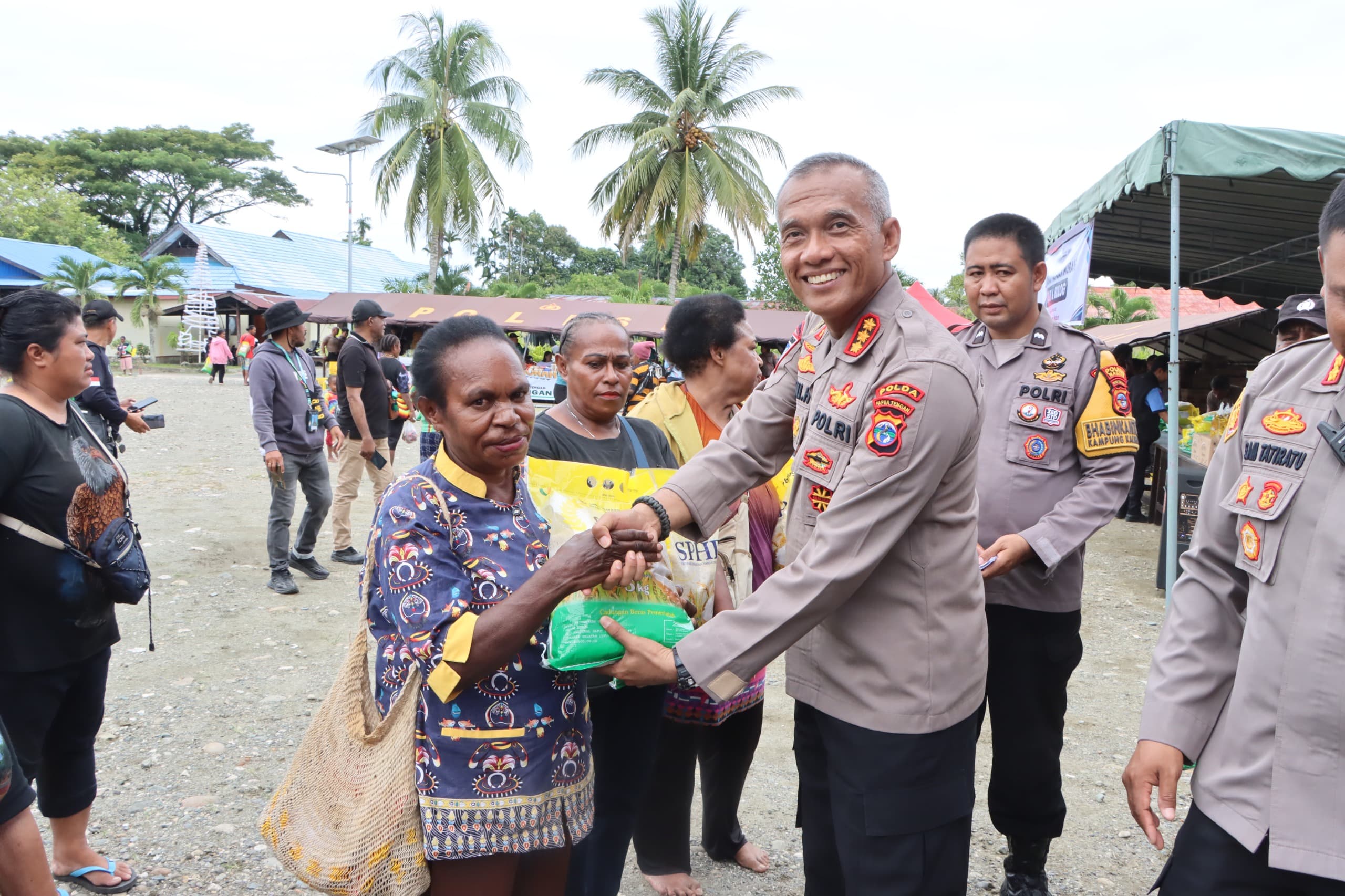 Dalam kesempatan tersebut, Deni Herdiana juga menyampaikan bahwa Kapolda Papua Tengah turut memberikan bantuan berupa bingkisan gratis kepada masyarakat, khususnya kepada para mama-mama yang hadir dalam kegiatan tersebut.
