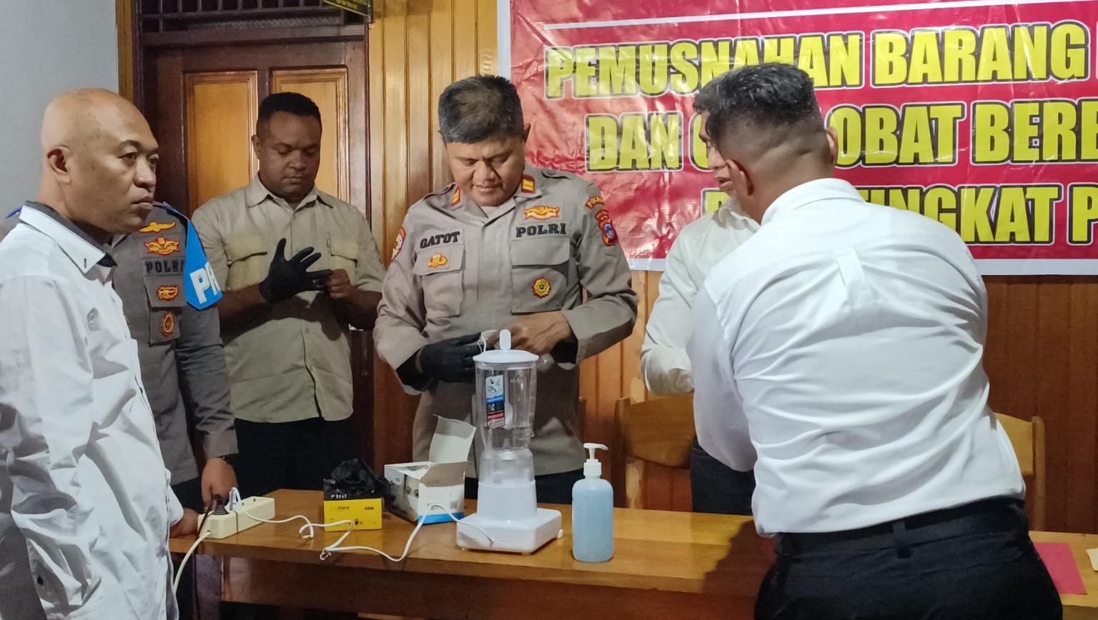 Proses pemusnaan sabu dengan cara di blender dan di buang