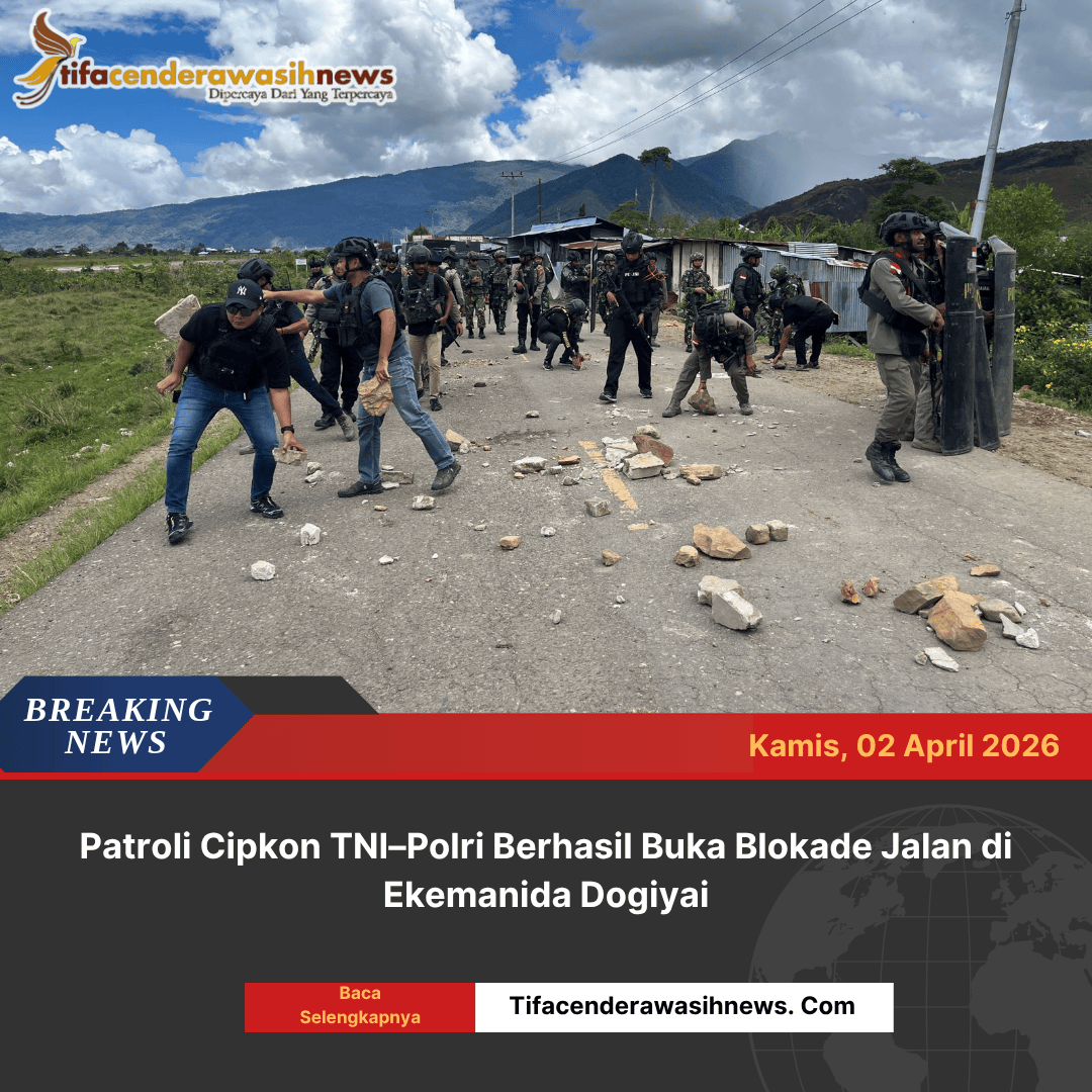 Kigamani, Papua Tengah | Personel gabungan TNI – Polri melaksanakan pembongkaran pemalangan jalan yang diduga dilakukan oleh kelompok orang tidak dikenal (OTK) di Kampung Ekemanida, Kabupaten Dogiyai. Kamis (02/04/2026).