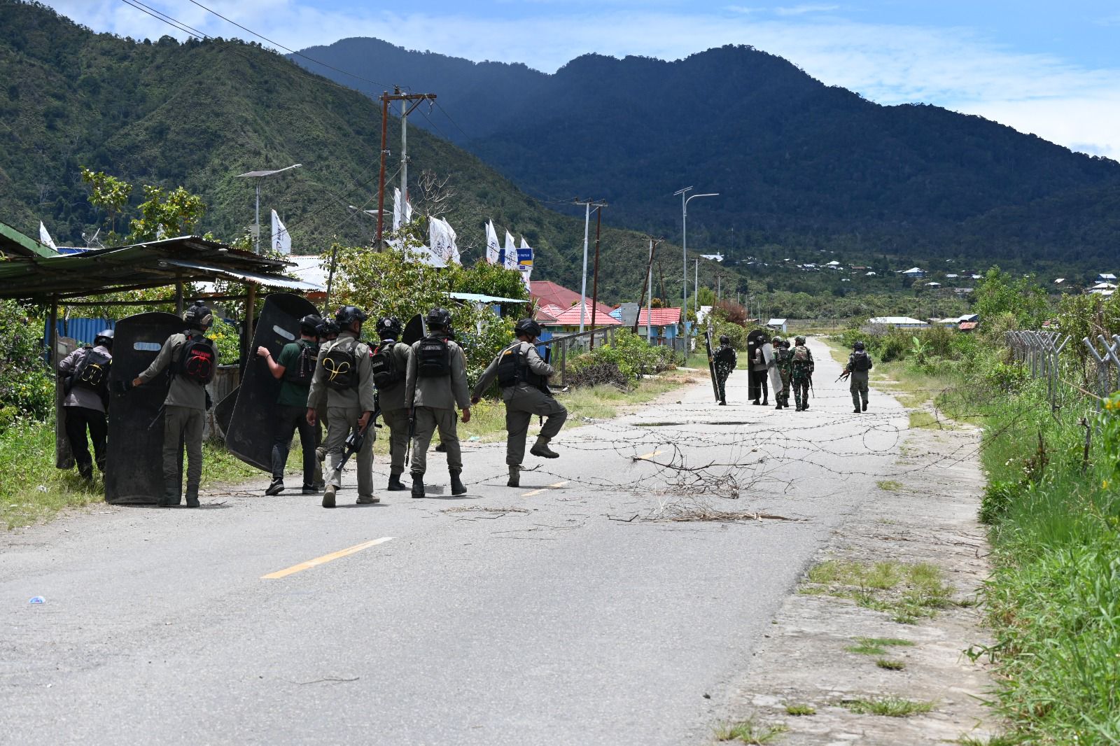 Setibanya di Kampung Ekemanida, personel langsung melakukan penertiban terhadap palang yang menghambat akses jalan utama. Pembongkaran dilakukan secara terukur dan penuh kewaspadaan guna menghindari potensi gangguan lanjutan di lapangan.