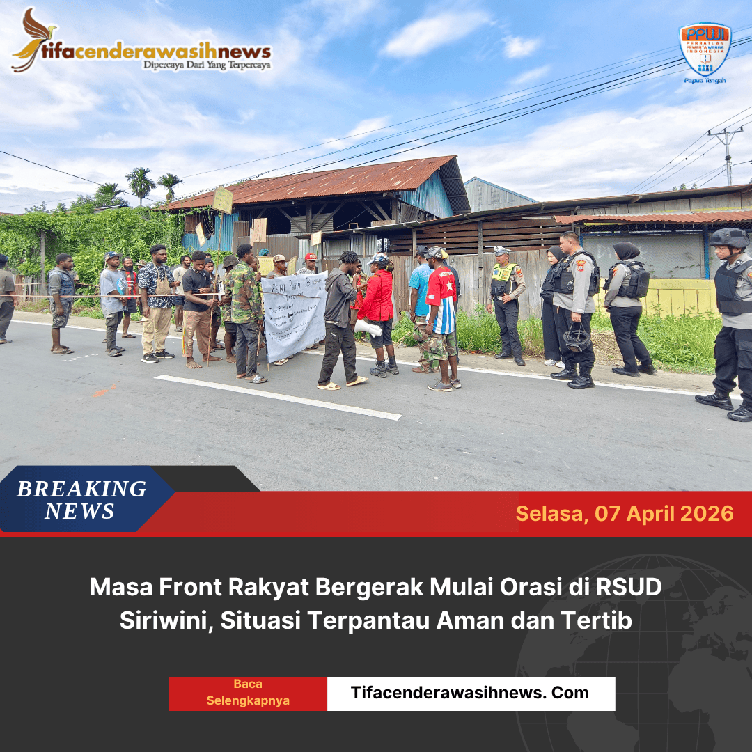 Nabire, PapuaTengah | Massa yang tergabung dalam Front Rakyat Bergerak mulai menggelar aksi penyampaian pendapat di sekitar area Rumah Sakit Umum Daerah (RSUD) Siriwini, Selasa (7/4/2026).
