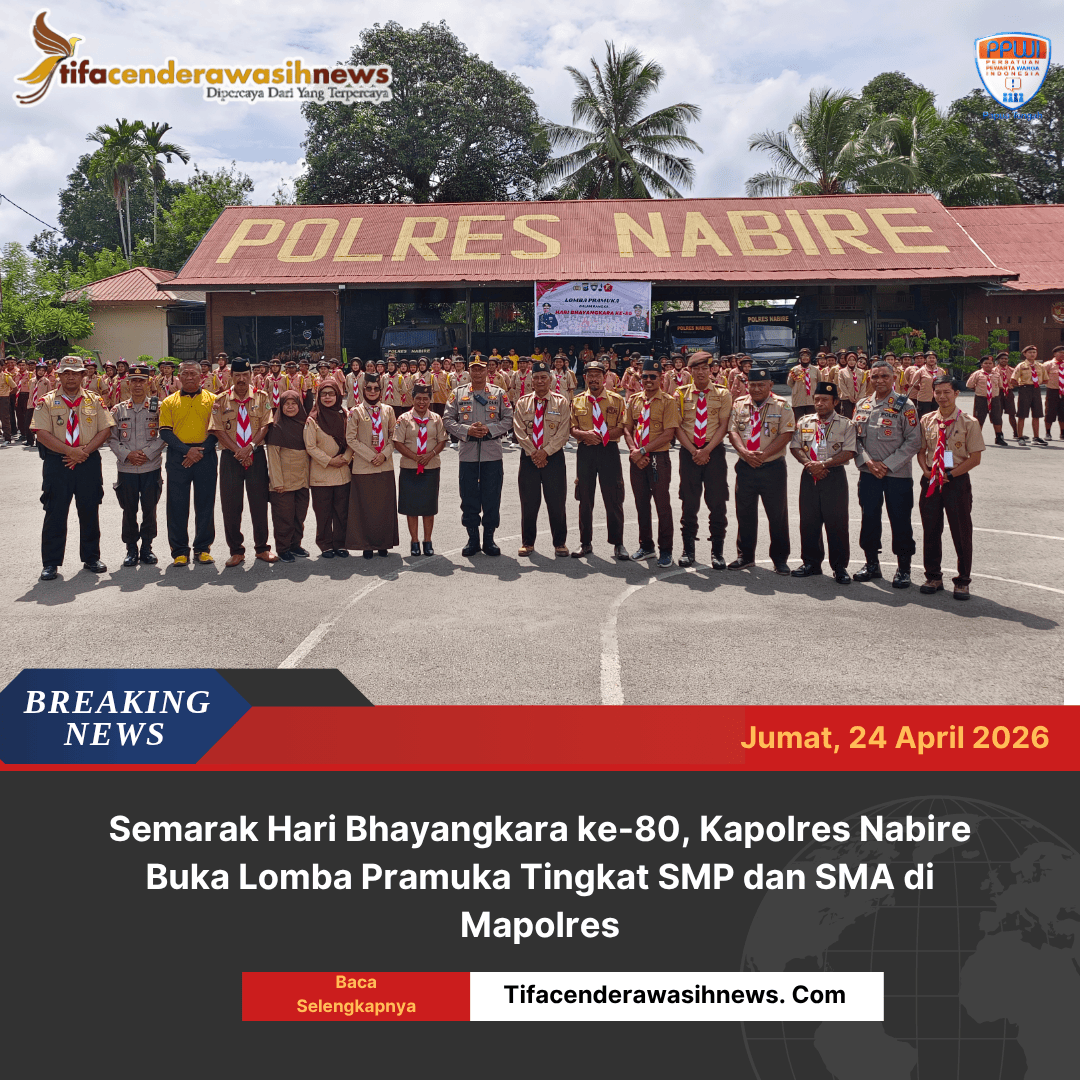 Nabire, Papua Tengah | Dalam rangka menyambut Hari Bhayangkara ke-80, AKBP Samuel D. Tatiratu. S. I. K. memimpin langsung pembukaan Lomba Pramuka yang digelar di Lapangan Mapolres Nabire, Jumat (24/04/2026). Kegiatan ini diikuti oleh hampir seluruh sekolah tingkat SMP dan SMA di Kabupaten Nabire dengan penuh semangat dan antusiasme.