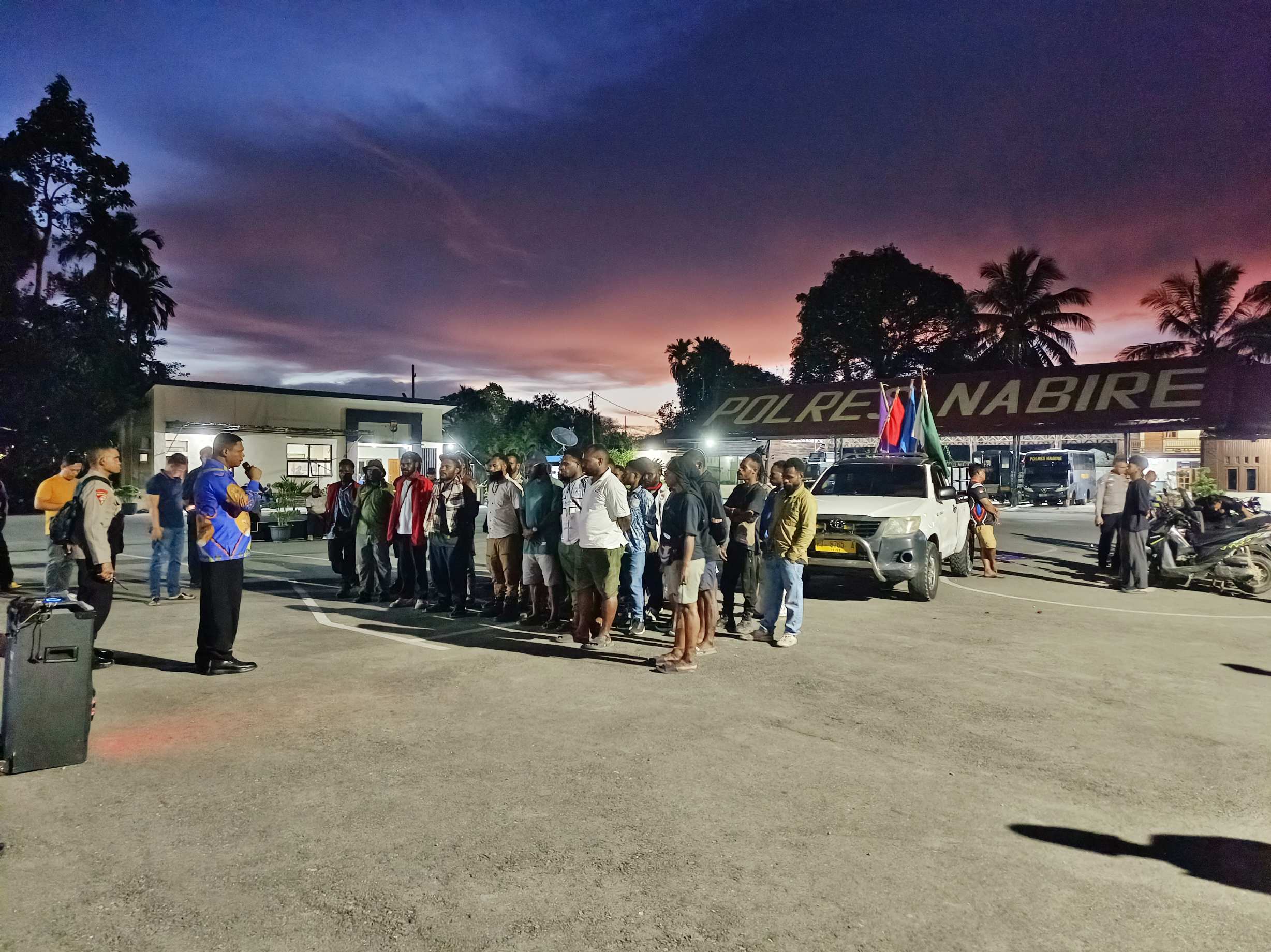 Nabire, Papua Tengah | Kepala Kepolisian Resor Nabire, AKBP Samuel D. Tatiratu, S.I.K., CPHR., memberikan penegasan secara humanis kepada massa yang tergabung dalam Komunitas Mahasiswa Puncak (KMPP) pada Sabtu petang sekitar pukul 18.20 WIT di Mapolres Nabire.