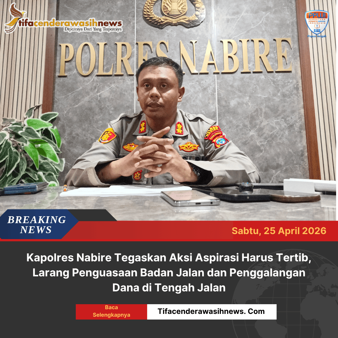 Nabire, Papua Tengah | Kepala Kepolisian Resor Nabire, AKBP Samuel D. Tatiratu, S.I.K., menegaskan bahwa penyampaian aspirasi di muka umum tetap dijamin oleh negara, namun harus dilakukan secara tertib, damai, dan tidak mengganggu aktivitas masyarakat, termasuk larangan penguasaan badan jalan dalam bentuk long march dari berbagai titik maupun aksi pengumpulan uang dengan cara menadahkan karton di tengah jalan. Sabtu (25/04/2026)