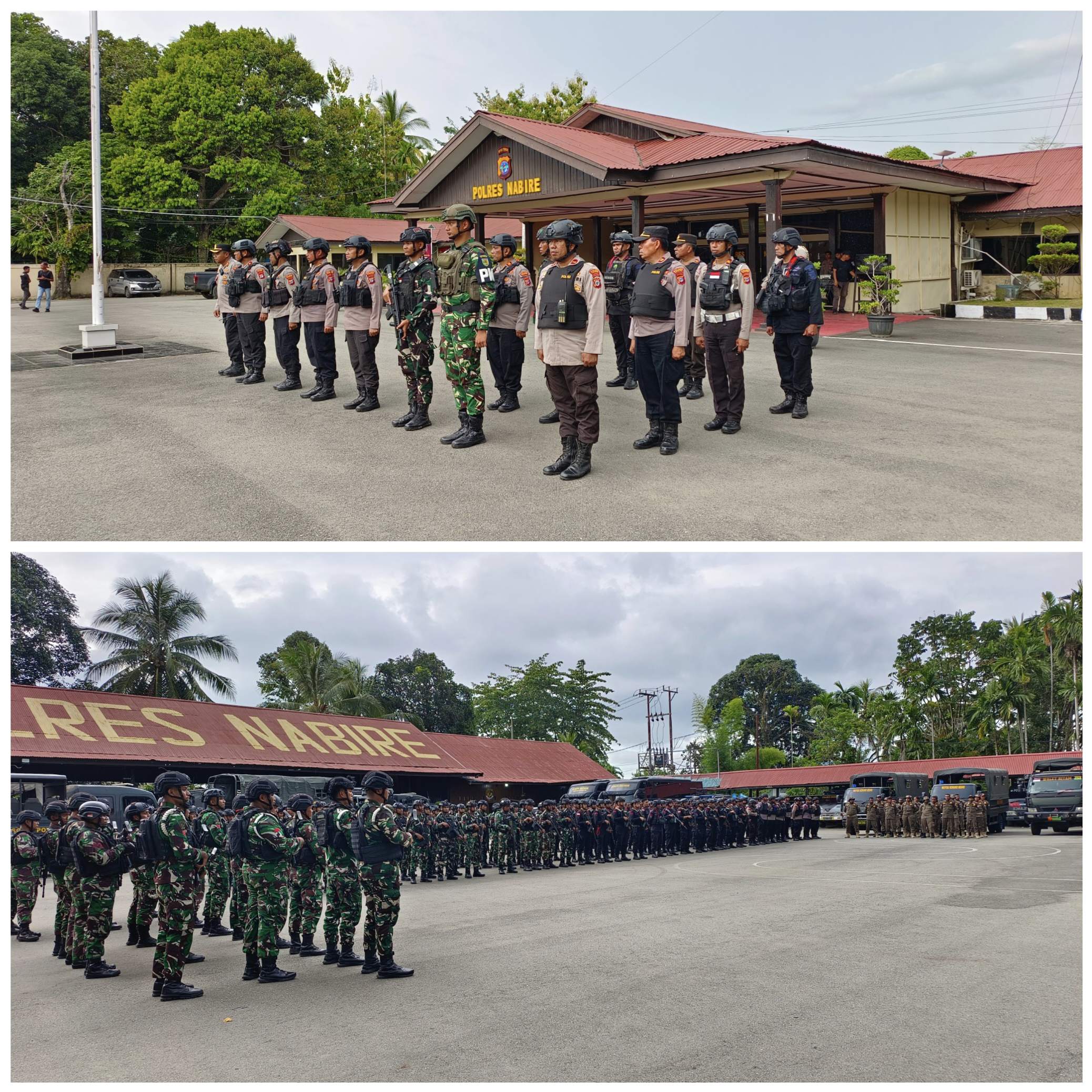 Nabire, Papua Tengah | Kepala Kepolisian Daerah (Kapolda) Papua Tengah, Brigjen Pol. Jermias Rontini, S.I.K., M.Si., memimpin langsung apel gabungan di Mapolres Nabire pada pukul 16.43 WIT usai pelaksanaan aksi unjuk rasa Komunitas Mahasiswa Pelajar Puncak (KMPP), Senin.