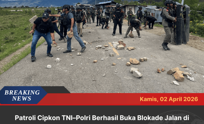 Patroli Cipkon TNI–Polri Berhasil Buka Blokade Jalan di Ekemanida Dogiyai